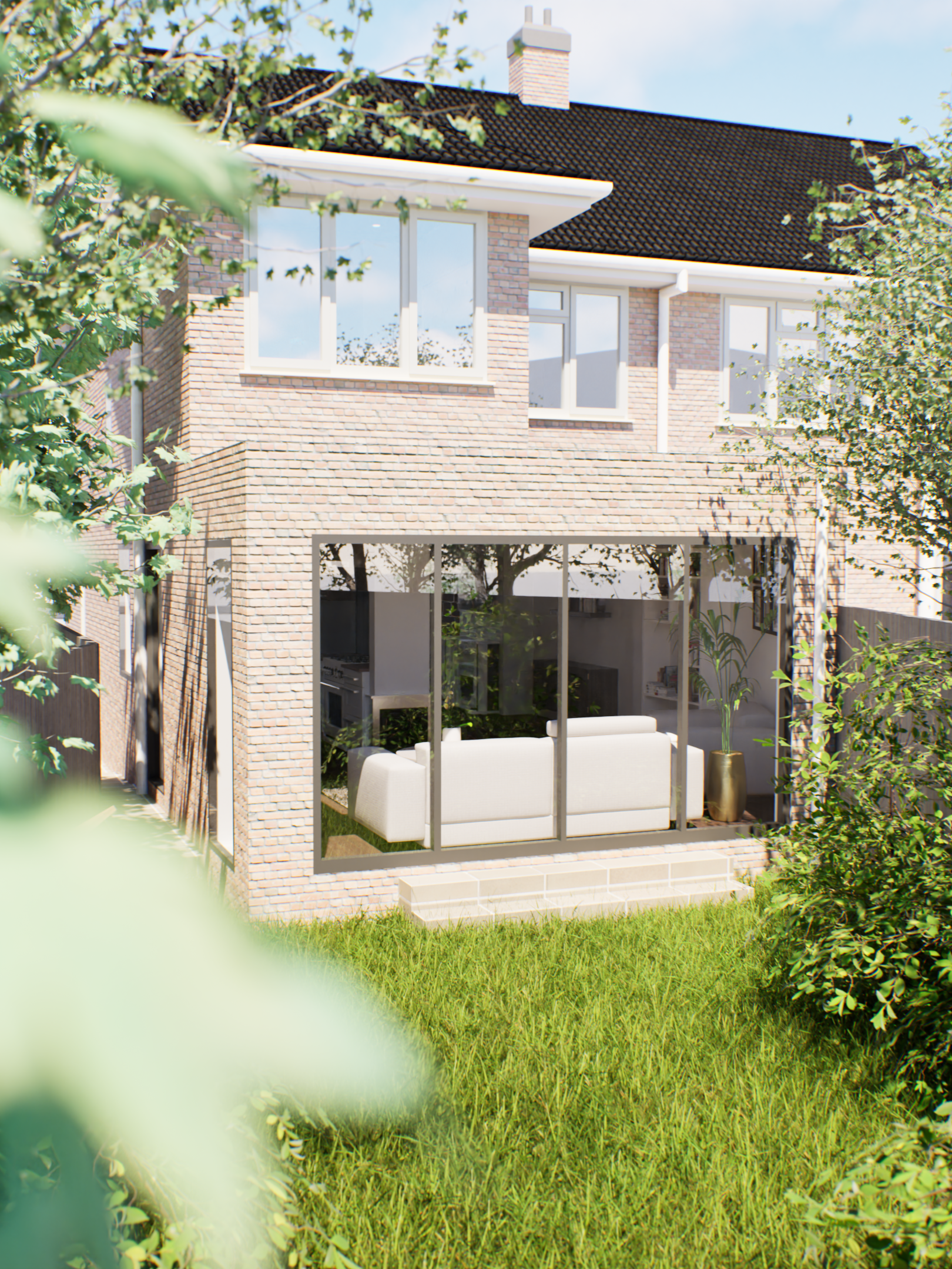 Two-storey extension designed by Sevval ArchiTech Studio in Surrey, UK, with a focus on natural light and garden views