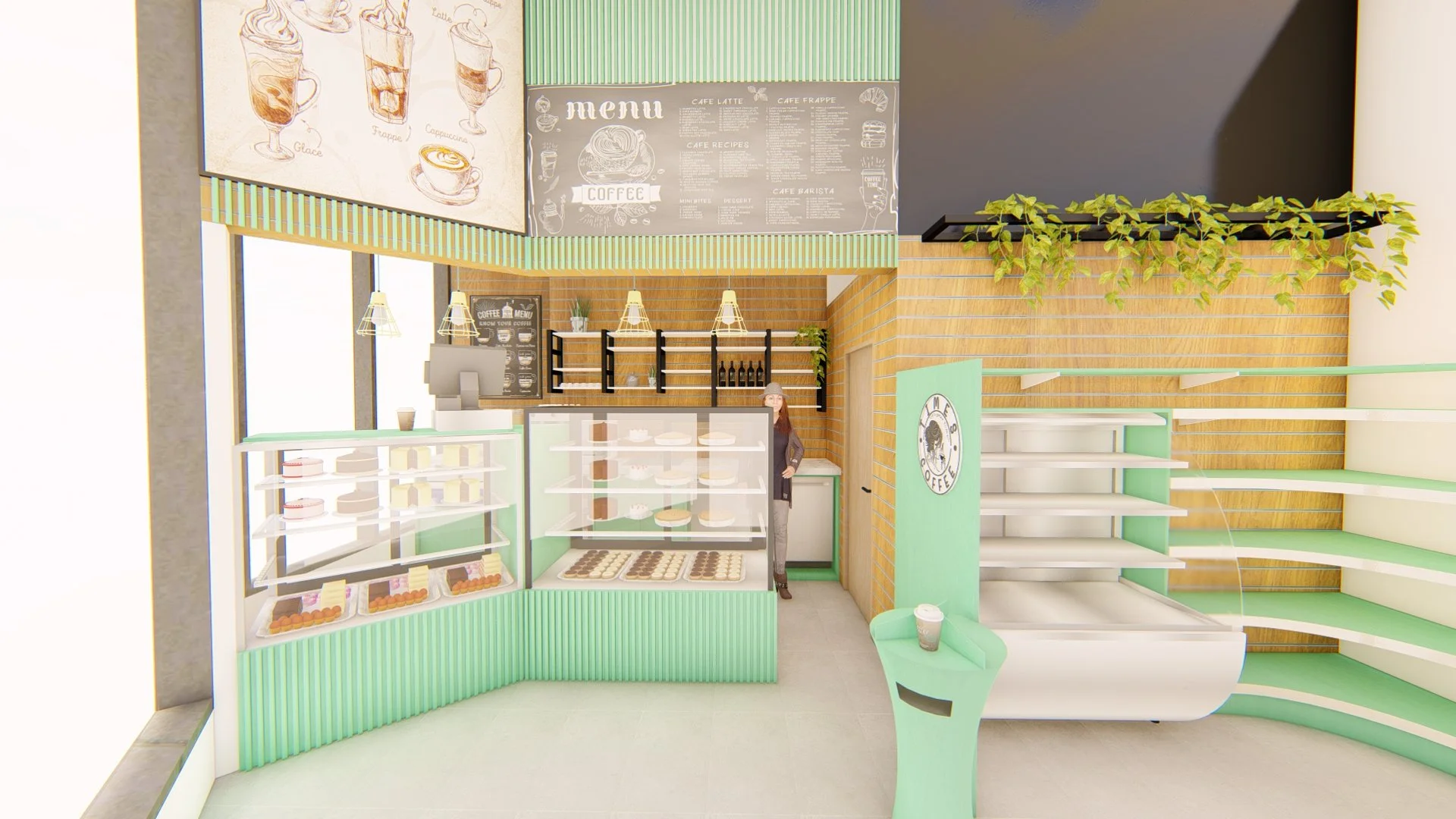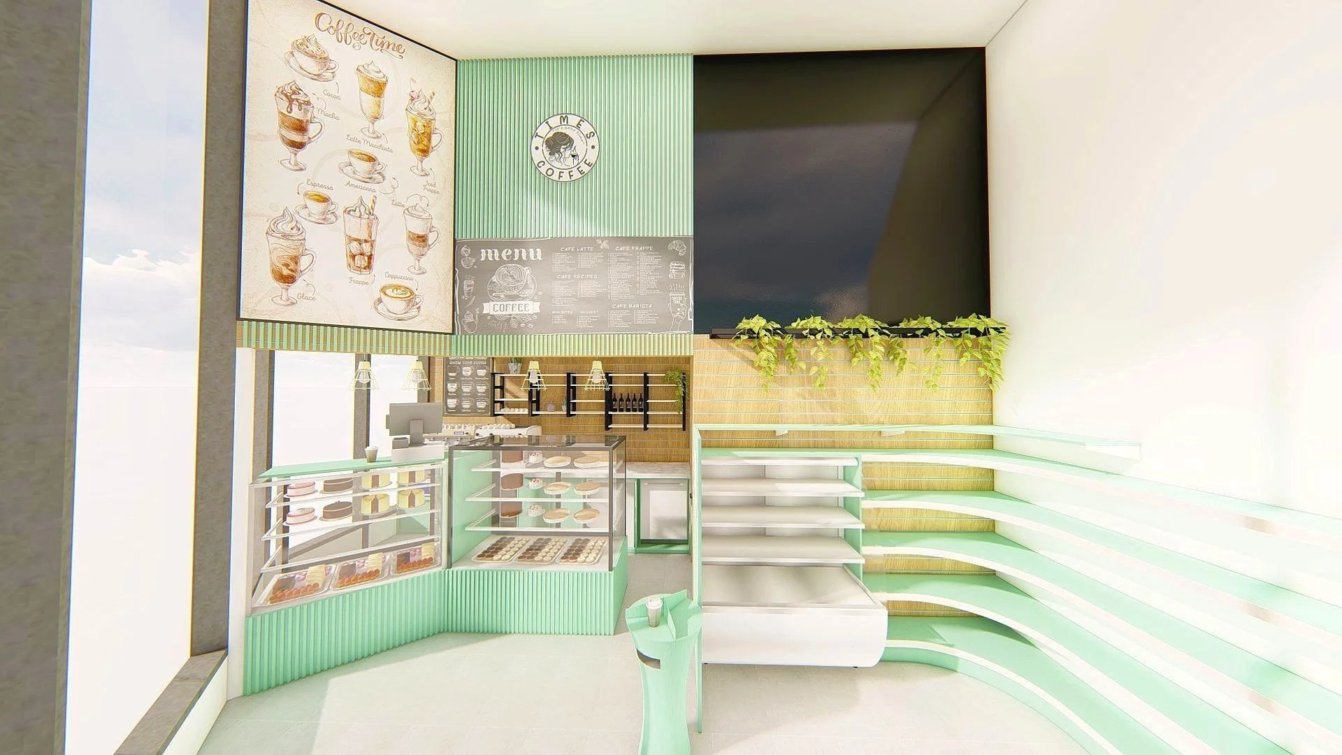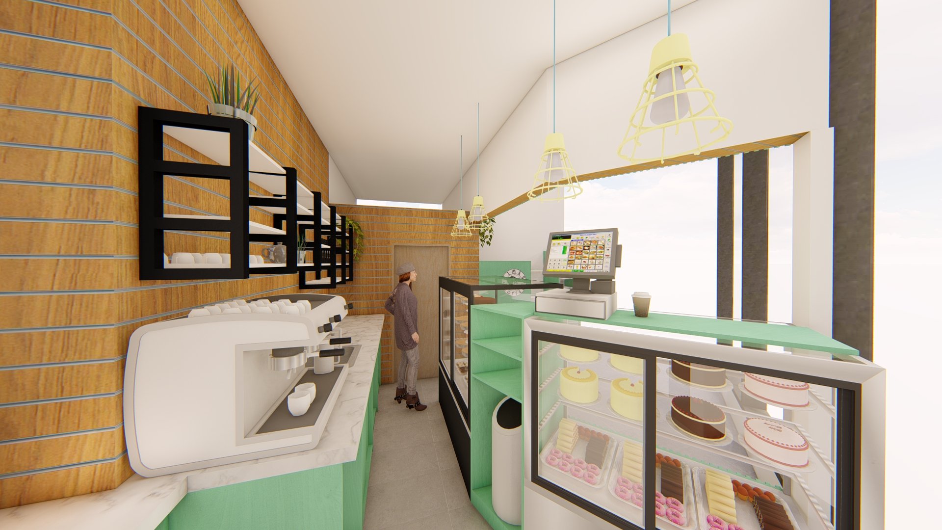 Proposed interior design for a café and product display area by Sevval ArchiTech Studio in London, UK
