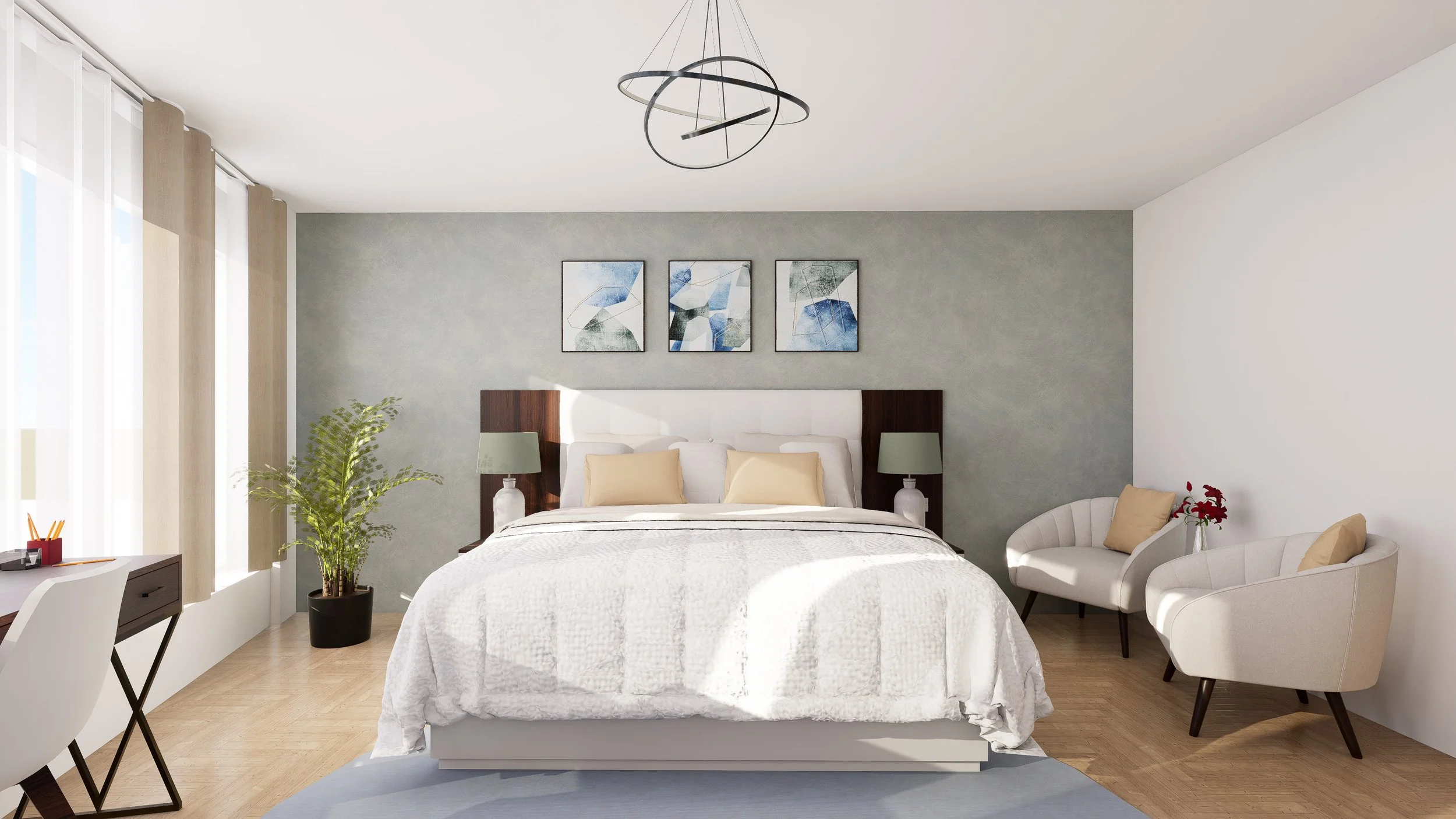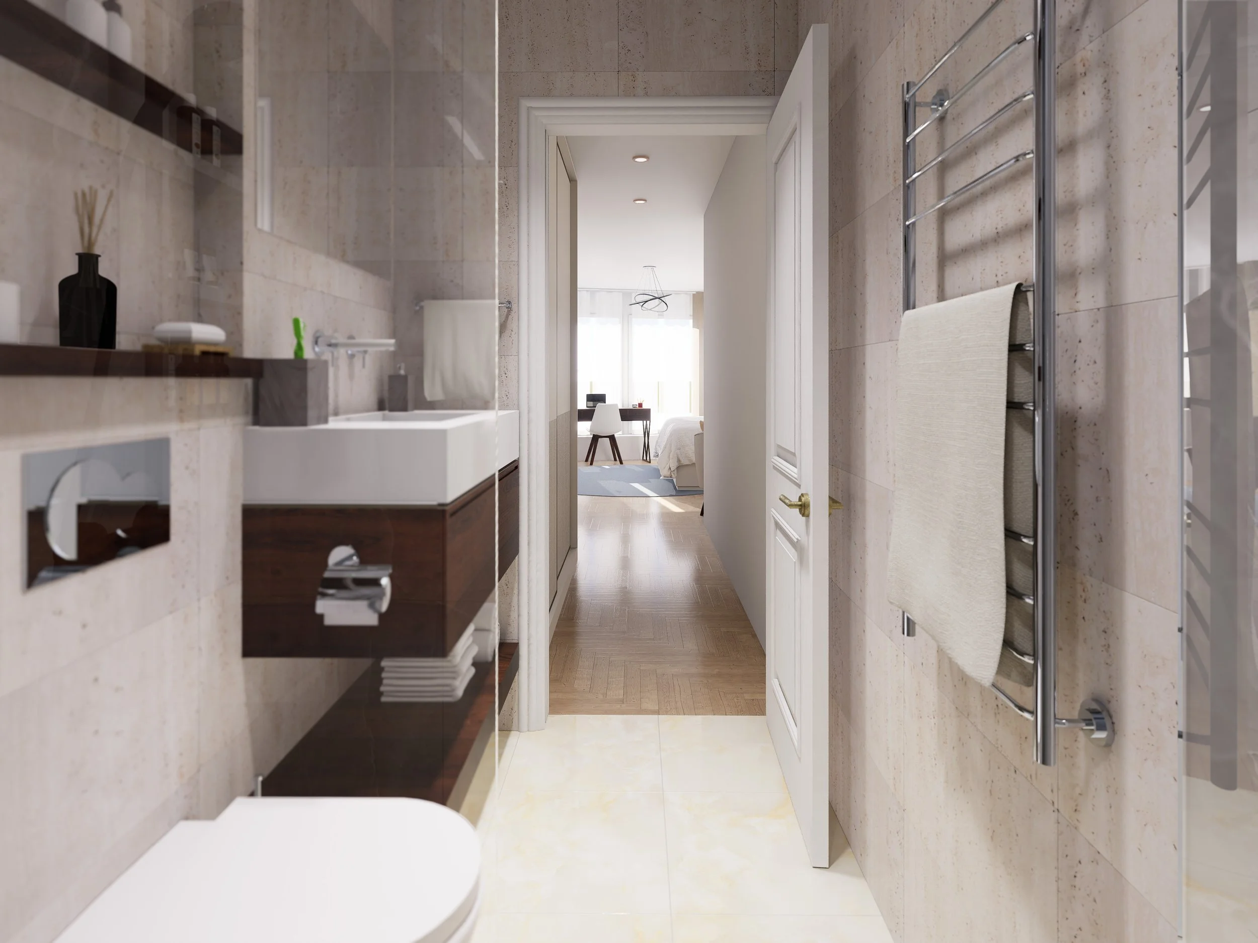 To address spatial limitations, we carefully positioned all habitable spaces near the windows to maximise natural light and ventilation. Sustainability played a key role in the solution. The entire flat was equipped with high-performance insulation to improve energy efficiency, while an electric boiler and smartly controlled underfloor heating system ensured a low-impact, high-comfort environment.